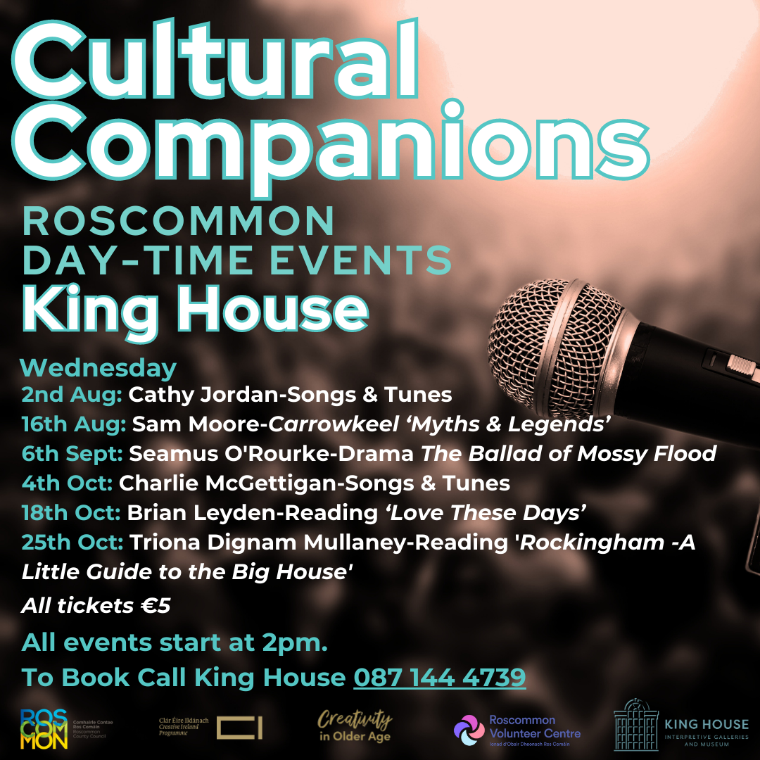 These events will form the nucleus of a wide-ranging diary of events for the new Cultural Companions programme in Roscommon, which will create local networks of people aged 50+ who accompany each other to arts and cultural events.